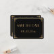 Cartões de Save the Date de casamento redondos dourados e pretos no estilo Art Déco do Grande Gatsby (13 cm por 9 cm) com texto mutável