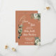 Cartões de save the date para o seu grande dia com flores em tons neutros de blush e marfim pintadas à aguarela e folhas em verde sage sobre um fundo de terracota. Personalize estes cartões com os seus nomes, local e data do seu casamento. Estes cartões Save the Date fazem parte de uma coleção coordenada