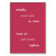 Nome de convidado Meal Choice Cherry Magenta Place Card com texto branco na moda em um fundo cor magenta de cereja. Use o modelo de personalização on-line para personalizar cada cartão de lugar individualmente antes de adicionar o cartão ao carrinho, para mostrar o número da tabela para a mesa específica onde o convidado está sentado, o nome do convidado e a escolha da refeição (ou restrição dietética) para o convidado. (Repita o processo de personalização para cada cartão que deseja comprar, adicionando-o ao carrinho individualmente cada vez). Esta placa de lugar impressa chegará plana e, portanto, precisará dobrar ao meio antes de ser usada. (O tamanho antes da dobragem é de aproximadamente 5" de altura por 3,5" de largura, destinado a ser dobrado de modo aproximadamente 2,5" por 3,5" após a dobragem). Uma vez dobrado o cartão impresso, a mesma redação será mostrada em ambos os lados (de modo a ser visível de ambos os lados de uma mesa). Um cartão de lugar bem personalizado para um casamento de na moda ou outra ocasião especial.