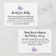 Aqui está uma opção simples e fofa para as necessidades de solicitação de livros para o chá de bebê. Todo o texto foi adicionado aos campos do modelo para que você possa alterar as palavras, se desejar - tanto ou tão pouco quanto precisar. Na frente, eu escrevi um verso excêntrico e uma mensagem explicativa amigável para o verso. Use o original, ou substitua por uma das muitas outras opções disponíveis online como achar melhor. Todo o texto é preto editável em branco editável; altere a cor ou as fontes, se preferir. O único enfeite é um gráfico de uma baleia roxa clara feliz que aparece em ambos os lados. // Desenhado por Melody Watson para Paper Muserie.