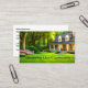 Cartões de visita modernos para um serviço de paisagismo ou jardinagem residencial, projetados com um belo gramado e uma casa com arbustos gráficos com o nome da sua empresa apresentado na frente deste cartão de visita para paisagistas profissionais.