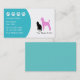 Os cartões de visitas dos cuidados dos animais de estimação com impressões brancos à moda da pata em uma turquesa colorem a disposição que do fundo e do texto você pode organizar sua própria maneira. Projetado para um veterinário, hospital do animal de estimação, baby-sitter do animal de estimação, animal de estimação que prepara, canil do animal de estimação.
