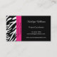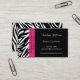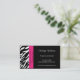 A zebra moderna e à moda listra listras preto e branco da zebra das características dos cartões de visitas na parte dianteira e a parte traseira e uma beira cor-de-rosa do acento na parte dianteira. Esteja para fora com estes cartões de visitas originais. Aperfeiçoe para a variedade de tipos e de profissões do negócio. Disponível em uma variedade de cores e estoques do cartão. Personalize com sua informação pessoal ou do negócio. Clique "personalizam-no!" abotoe para mudar o estilo de pia batismal, o tamanho do texto, a cor de texto e o mais!