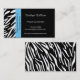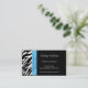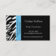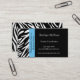 A zebra moderna e à moda listra listras preto e branco da zebra das características dos cartões de visitas na parte dianteira e a parte traseira e uma beira do acento do azul de turquesa na parte dianteira. Esteja para fora com estes cartões de visitas originais. Aperfeiçoe para a variedade de tipos e de profissões do negócio. Disponível em uma variedade de cores e estoques do cartão. Personalize com sua informação pessoal ou do negócio. Clique "personalizam-no!" abotoe para mudar o estilo de pia batismal, o tamanho do texto, a cor de texto e o mais!