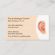 Cartões de visitas para um Audiologista e Otolaryngologista em um design personalizado moderno com gráfico de um ouvido e funcionamento de um sistema auricular em um estilo editável que você pode personalizar online.