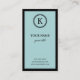 Estes cartões de visitas elegantes caracterizam um fundo azul e uma beira preta na parte dianteira, e o fundo preto na parte traseira. O círculo o na parte superior é para seus inicial/monograma. Personalize para adicionar/remova os campos ou ajuste o alinhamento do monograma como necessário.