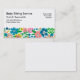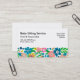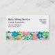 Um simples modelo de cartão de negócios colorido de babá em um design floral e colorido, e modelos de texto que você pode personalizar facilmente on-line. Concebido para um profissional de cuidados diurnos, serviço de babá ou uma babá independente.