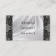 Cartões de visitas profissionais do laço preto elegante no fundo branco do cetim. Os cartões de visitas originais com um tecido retro dos rosas do laço do preto da antiguidade do vintage olham na parte dianteira e na parte de trás do cartão pronto para que você adicione sua informação feita sob encomenda. O texto preto, bonito do roteiro na parte dianteira e na parte traseira pode facilmente ser mudado. Aperfeiçoe para o decorador interior, o casamento e o negócio nupcial do vestido, o planejador de evento, a loja do vintage, e a roupa, sewing, negócio de matéria têxtil do tecido igualmente.