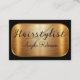 Cartões de visitas de compromisso com o penteado elegante e elegante criaram com um gráfico de fundo em escala superior de tom dourado e seu nome e profissão mostrados em letras elegantes de estilo caligráfico que o apresenta como um verdadeiro cabeleireiro profissional.