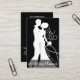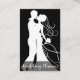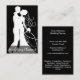 Cartões de visitas clássicos para uma empresa de Planejador de Casamento ou Serviços de Casamento criados com um gráfico de noiva e noivo na frente e seus detalhes de contato e com uma lista de serviços que você pode personalizar online.