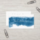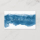 Cartões de visitas elegantes da aguarela que caracterizam uma textura azul do watercolour com seu nome em uma pia batismal elegante, branca do roteiro na parte dianteira. Nome customizável, sobrenome, título ou nome da empresa e informações de contacto na parte traseira. Um design à moda para mulheres.