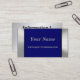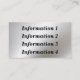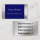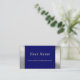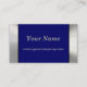 Uma beira metálica do quadro no cromo de aço inoxidável de prata liso do olhar na parte dianteira do cartão com um fundo azul dá um cartão de visita devista do olhar 3d corajoso, original. Personalize facilmente com sua própria informação. Use a pia batismal cinzenta de harmonização dinâmica mostrada ou mude facilmente o estilo de pia batismal e colora-o. Igualmente você pode facilmente mudar o fundo azul a toda a cor. Apenas clique sobre "personalizam-na" e clicam-na então sobre "editam" e "fundo" para mudá-lo. Um cartão de vista original e esperto, especialmente excelente para industrial, desenhistas, artistas, varejo, etc. Mais informação pode ser psta sobre a parte traseira também no fundo liso do metal com texto preto dinâmico. Um cartão de visita forte que esteja para fora do resto.