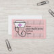 Cartões de visitas da enfermeira diplomada, boné da enfermeira e design do estetoscópio no fundo cardíaco das tiras do ritmo. Aperfeiçoe para que as enfermeiras das saúdes ao domicílio ou de visita saam dentro - das casas do paciente. A parte dianteira e a parte traseira do cartão são customizáveis incluindo a cor do fundo.