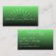 Cartões de visitas personalizados que apresentam uma silhueta de duas palmeiras em uma ilha com ondas ao longo do fundo. O fundo é verde-claro desaparecendo em preto. Estes cartões de visitas personalizados seriam perfeitos para os negócios pelas compras de surf de praia, lojas de roupas de praia, restaurantes e bares. Certifique-se de personalizar todos os campos de texto com o seu estilo de fonte e cores favoritos.