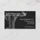 Este cartão de visita customizável da quiroterapia caracteriza um homem com o desenho da espinha sobrepor em seu para trás, em um fundo escuro.