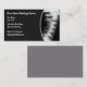 Modelo de cartão de negócios moderno da radiologia com imagem de um raio X no fundo e na disposição que moderna do texto você pode personalizar em linha. Projetado para uma tecnologia, um radiologista, ou um Chiropractor do raio X em um escritório da radiologia que faça varreduras de MRI, de CT, e de CAT.