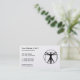 Este cartão de visita da terapia da massagem caracteriza o texto preto e o logotipo preto do estilo do homem de DaVinci Vitruvian à direita do texto. Para mover-se/resize o logotipo, ou adicione-o/remova-o os campos do texto, ou mude-os a uma outra cor clara do fundo, clicam sobre "personalizam-na." Sinta livre contactar-me com todas as perguntas.