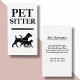 Modelo de cartão de negócios de babá, poderoso e robusto, com sua profissão destacada na frente, em tipografia moderna e ousada, com suas informações de contato mostradas no lado do sacudir. Um design moderno simples com símbolo de cão e gato para um serviço de estimação.