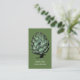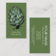 Um legal cartão de visita verde de alcachofra com texto branco sobre fundo verde.