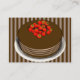 Os cartões de visitas que apresentam um bolo de chocolate com ilustração de morangos sobre fundo listrado de um lado e o inverso têm áreas de informação personalizáveis. Outros estilos estão disponíveis.