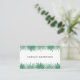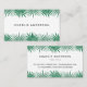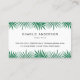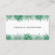 Um cartão de visita moderno, mínimo, com folhas de palma e folhas de monstera, dispostas como uma borda verde de cima e de baixo na frente. Seu nome está impresso em cinzas escuras no meio. Campos de modelo personalizáveis para nome, título e informações de contato no verso. Este modelo de cartão de negócios é perfeito para designers de interiores, salões de beleza, decoradores, resorts, blogueiros, designers de jardim, jardineiros, floristas etc.