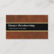 Cartões de visitas modernos de carpinteiro ou de madeira com fundo de madeira simulado e um layout de texto fácil de personalizar. Melhores cartões de visitas para temas relacionados a carpintaria, madeira, marcenaria, cozinha e banho.