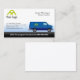 Uma carrinha azul é a principal imagem deste design de gradiente. O logotipo e os detalhes do seu nome aparecem na parte superior, com o nome da sua empresa aparecendo sobre uma faixa preta gradiente na parte inferior. Este design é adequado como um cartão de nome para as pessoas do setor de transporte ou logística.