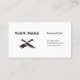 Este é um cartão de visita profissional com um logotipo mínimo de faca e espátula.