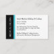 Cartões de visitas modernos de faturamento e codificação médica em um design mínimo que inclui um fundo preto, branco e azul, um layout simples de texto organizado que você pode personalizar e projetado para um negócio que ajuda consultórios médicos e hospitais a gerenciar suas contas a receber e faturar.
