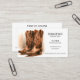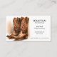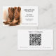 Cartões de visitas com botas de cowboy modernas e artísticas design. Excelente para compradas de visto ocidentais e outras empresas. Use o código QR para seu compro online ou site. Personalize o texto na parte frontal e traseira da placa. Cores castanho e preto. Use a modelo para criar seus próprios cartões de visitas.