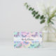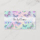 Cartões de visitas de lembrete de compromisso para uma Hairstylist projetada com um padrão de borboleta colorido em um gráfico de fundo de vidro com seu nome exibido na frente e seu modelo de compromisso no lado do sacudir uso de ambos os lados para que você não precise ter cartões de visitas e cartões de compromisso separados.