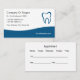 Modelo de cartão de visita de nomeação de Dentista moderno em um moderno e elegante design com imagem de dente, layout de texto que você pode personalizar e cartão de compromisso no verso nesse estilo inteligente de dois lados projetado para Dentista, escritório dentário, Orthodontista ou cirurgião oral. Projetado para dobrar como cartões de visita e de compromisso.