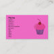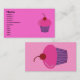 Estes cartões de visitas cor-de-rosa são perfeitos para amantes do cupcake, padeiros ou qualquer pessoa que realmente ame a cor rosa! Esta design apresenta um cupcake de desenho animado fofo com glacé rosa brilhante num invólucro púrpura listrado e tocado com uma bela cereja vermelha profunda! Estas placas são excelente de rede! Personalize-as com as suas informações de contato (endereço de correio eletrônico, endereço de correio eletrônico, número de telefone, número de telefone celular ou qualquer outra coisa que pretenda!).
