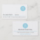 Um cartão de visita profissional, moderno e elegante para dentistas. Apresenta um logótipo de círculo azul com um contorno de um dente molar com uma forma cardíaca com um sinal de primeiros socorros. Excelente para dentistas que estão a amamentar os dentes dos doentes de volta à saúde. Personalize facilmente com seus detalhes comerciais.