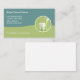 Cartões de visitas únicos e brilhantes do escritório Dentista em uma moda simples design de tons de verde com dente dentário e emblema de escova de dentes em cores coordenadas. Um modelo on-line editável para a indústria dentária.