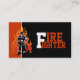Bombeiro/bombeiro cartões de visitas que apanham os olhos a laranja-preto, apresentando um bombeiro com o seu machado em chamas sobre fundo preto e laranja-vermelho/grenadier. Um cartão de visita eficaz com uma aparência profissional. Alguns elementos são cortesia de vectorportal.com.