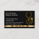 Enfermeiro Registrado Clássico ou cartão de visita de enfermagem de saúde doméstica, design, criado com elementos design de tom dourado, incluindo um gráfico estetoscópico que tem um toque de borda.