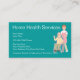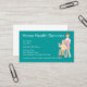 Cartões de visitas de enfermeiras de saúde doméstica com design único e simples que inclui um símbolo gráfico de enfermeiro e paciente junto com a cor e o layout do texto que você pode personalizar facilmente para trabalhar de acordo com suas necessidades. Concebido como modelo de cartão de negócios para uma enfermeira registrada que trabalha como assistente de mais velho, profissional de saúde doméstica ou enfermeiro.