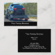 Cartões de visitas moderno de reboque de caminhões automotivos de reboque em um legal design de dois lados com a imagem de veículos carregandos de reboque achatado na estrada em segundo plano.