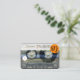 Áudio transparente antigo (cassete de áudio - modelo n°2) para personalizar com seu nome, endereço e muito mais. cartões de visitas personalizáveis para DJ com etiqueta redonda laranja para logotipo. Não se esqueça de toda a coleção de fitas retrô (laranja e preta, cor verde, com decalques e mais...) para o aniversário e mais...