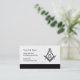 Projetados para ter um toque moderno e elegante, esses cartões de visitas personalizados de maçonaria preto e branco retratam o quadrado e o símbolo de alvenaria na frente, e o texto que você pode personalizar. Este modelo lateral do solteiro vem com um estoque de cartão grosso de qualidade e tem várias outras opções de papel a serem selecionadas. Categoria: modelos de cartão de negócios masônicos. Cores: preto e branco.