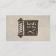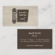 Um cartão de visita com elementos retrorreflectores como o antigo barbeiro da escola compra luz rotativa e uma placa com ícones de tesoura. A paleta colorida masculina de fundo de textura castanho e bege esbranquiçada torna-a mais adequada para barbeiros masculinos e estilistas capilares. Personalize facilmente com seus detalhes comerciais na página inversa.