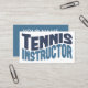 Um cartão de visita de professor Tênis ousado que diz "Instrutor Tênis" em tons de azul. Sinta-se livre para mudar as cores de fundo para qualquer coisa que você quiser.