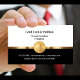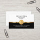 Cartões de visitas do tema do investimento Dourado clássico desenhados com um design de ouro e uma moeda de ouro em segundo plano num esquema clássico que você pode personalizar para um serviço de negócios, coleta de moedas ou planejamento financeiro numismático.