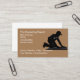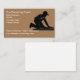 Cartões de visitas de temas para a limpeza de tapetes e instalações para pavimentos concebidos com uma silhueta gráfica de um profissional de tapetes em segundo plano e com texto editável.