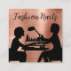 Cartões de visitas de tecnologia de unhas com manicura de moda brilhante criados com uma textura de tom dourado de rosa, olhem para o fundo e a silhueta profissional de unhas, e seus detalhes de contato organizados como texto editável no lado do sacudir.