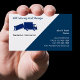 Movendo o modelo de cartão de negócios de serviço em um simples design moderno que inclui uma imagem de um caminhão em movimento e um homem em movimento com uma cor azul de fundo que você pode mudar. Concebidos como cartão de visita para um serviço residencial ou comercial em movimento.