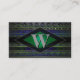 cartões de visitas de monograma listrados de neon que seriam perfeitos para alguém com muita moda e estilo. O monograma de letras é personalizável para qualquer início que você quiser. As cores principais são azul vibrante, verde e preto.