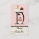Cartões de visitas personalizadas da letra D Monograma para o seu cupcake ou outra empresa de padaria. Doce e Contemporâneo! Este cartão de visita apresenta três cupcakes pintados à mão em chocolate marrom e rosa macio e creme. A Letra Monográfica está no "chocolate" e vai apelar aos amantes doces em todo o lado! O fundo é cor-de-rosa macio, com espirais latas coloridas sobre um acabamento de bolachas e biscoitos de chocolate. Esta design é perfeita para o seu chá de casamento, chá de panela ou para empresas como coordenadores de casamento, planejadores de eventos, padarias, compras de assares, designers de bolo de casamento personalizados, serviços de cupcake especial e muito mais. Todas as letras do alfabeto estão disponíveis, se você não vê o que você quer apenas nos enviar um e-mail!