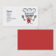 Cartões de visitas de assar com chef de desenho vestindo um chapéu e um avental vermelho segurando acessórios da cozinha. Ideal para uma padaria.